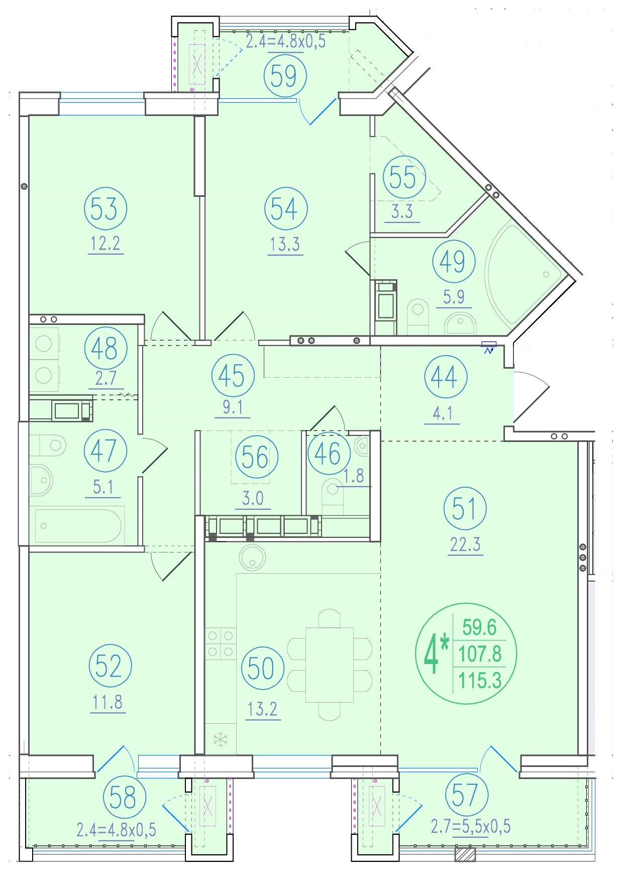 Квартира этаж 3, площадь 115.30 м2