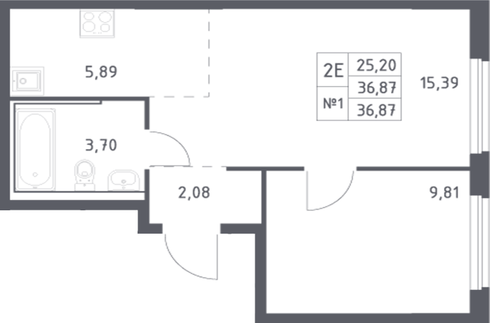 Общая площадь: 36.87м2