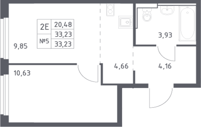 Общая площадь: 33.23м2