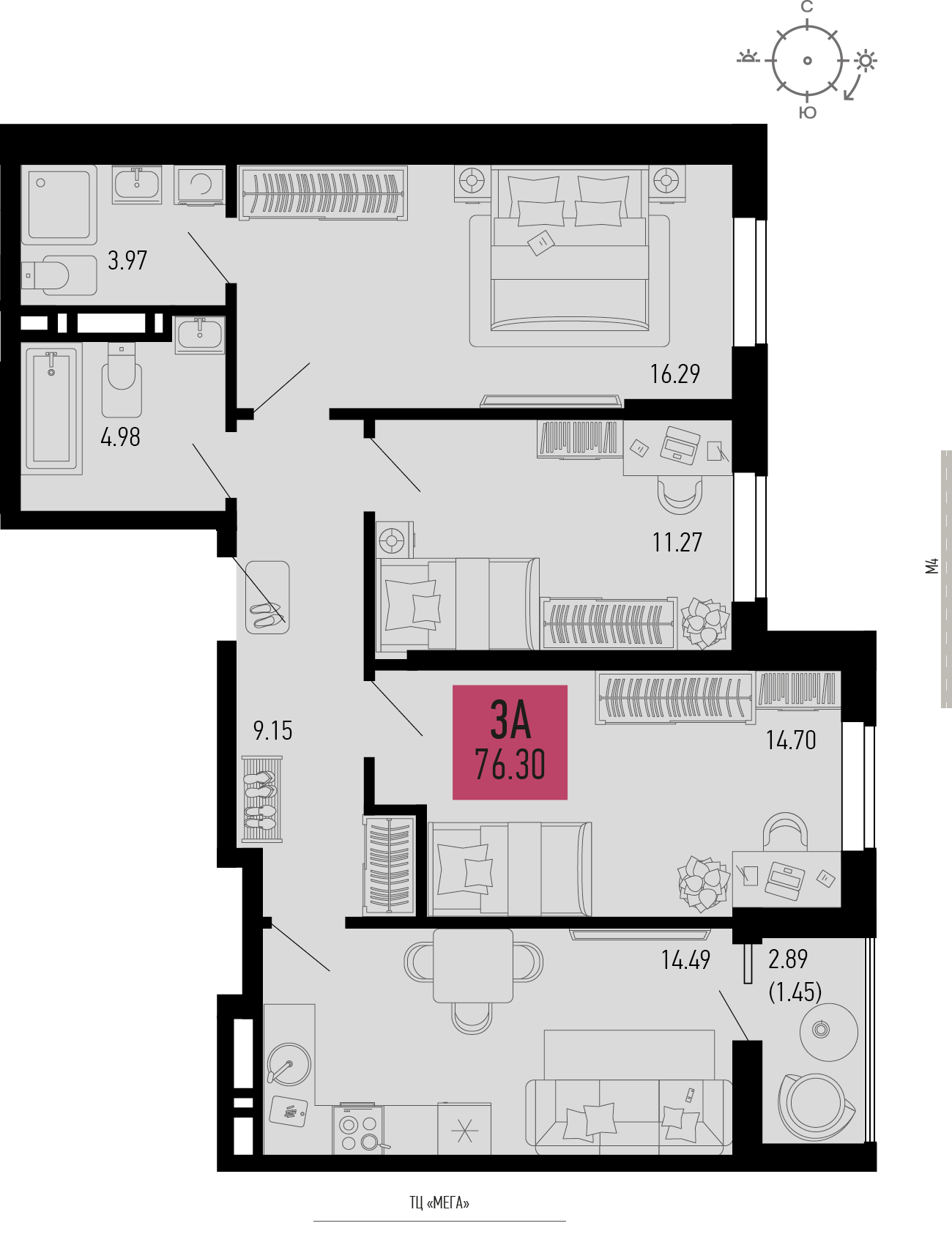 Квартира этаж 3, площадь 76.30 м2