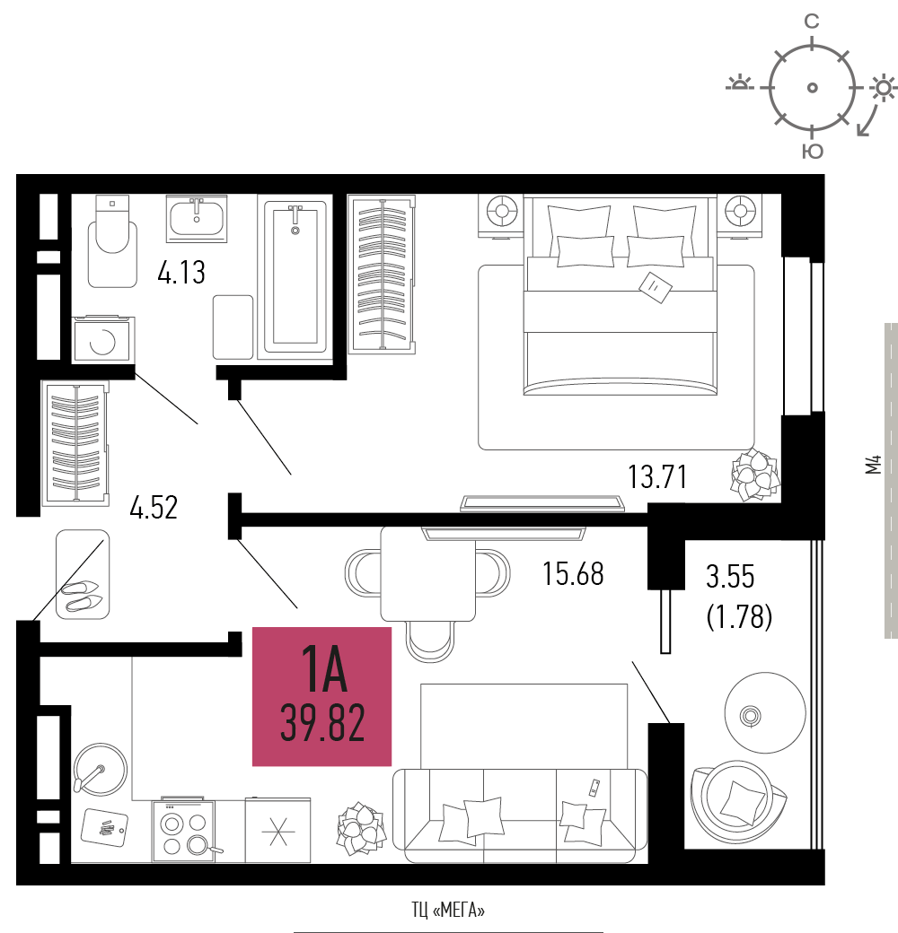 Общая площадь: 39.82м2