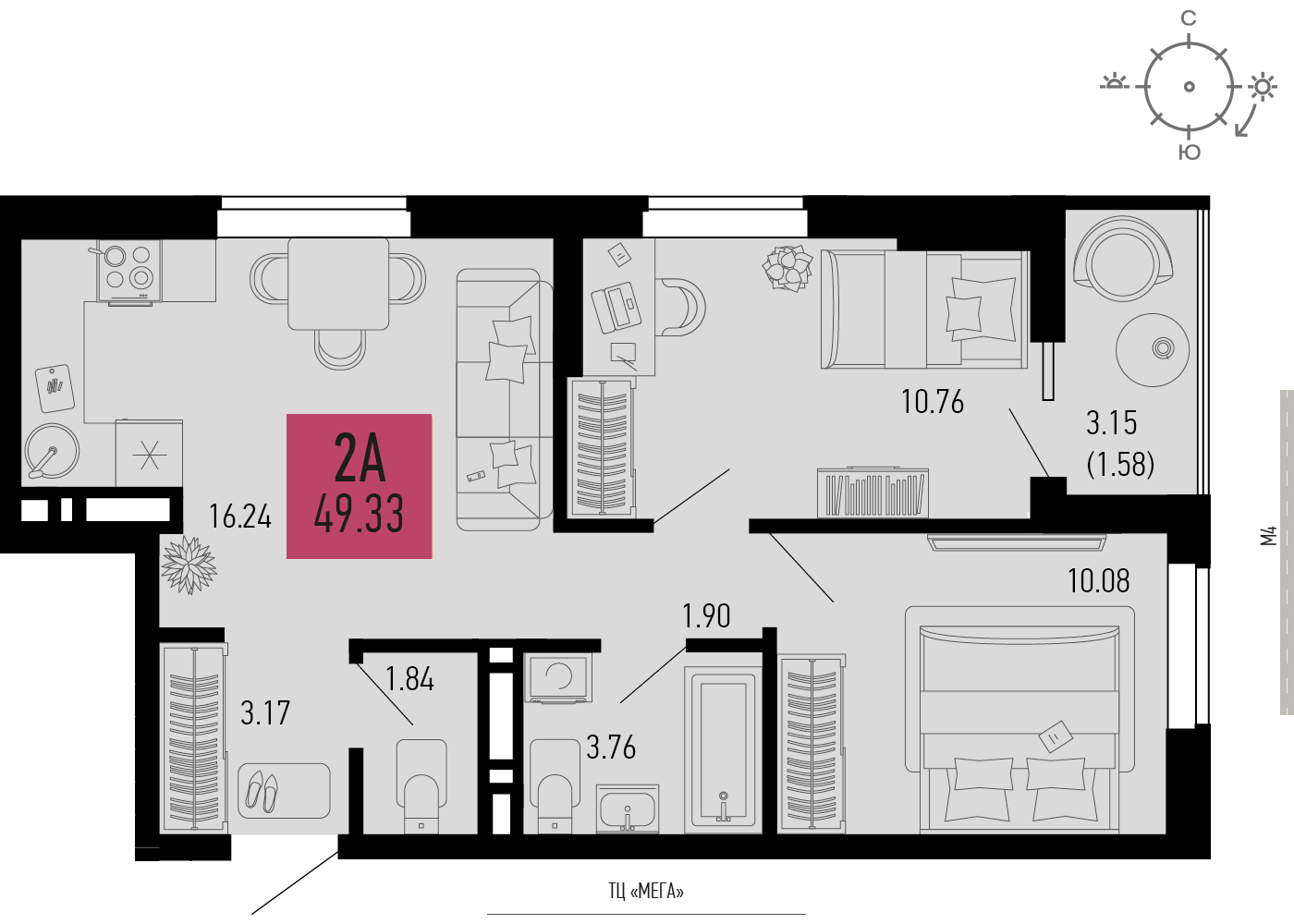 Общая площадь: 49.33м2