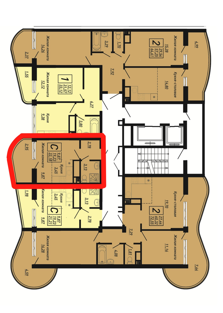 Квартира этаж 16, площадь 22.18 м2