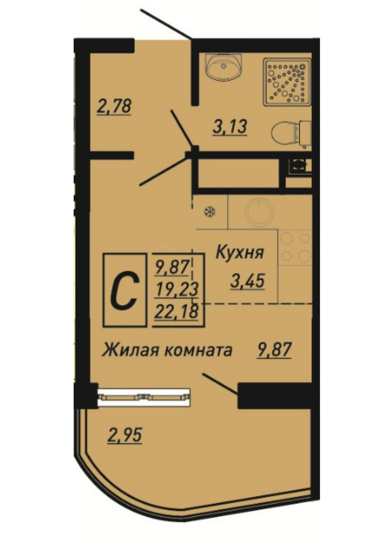 Общая площадь: 22.18м2