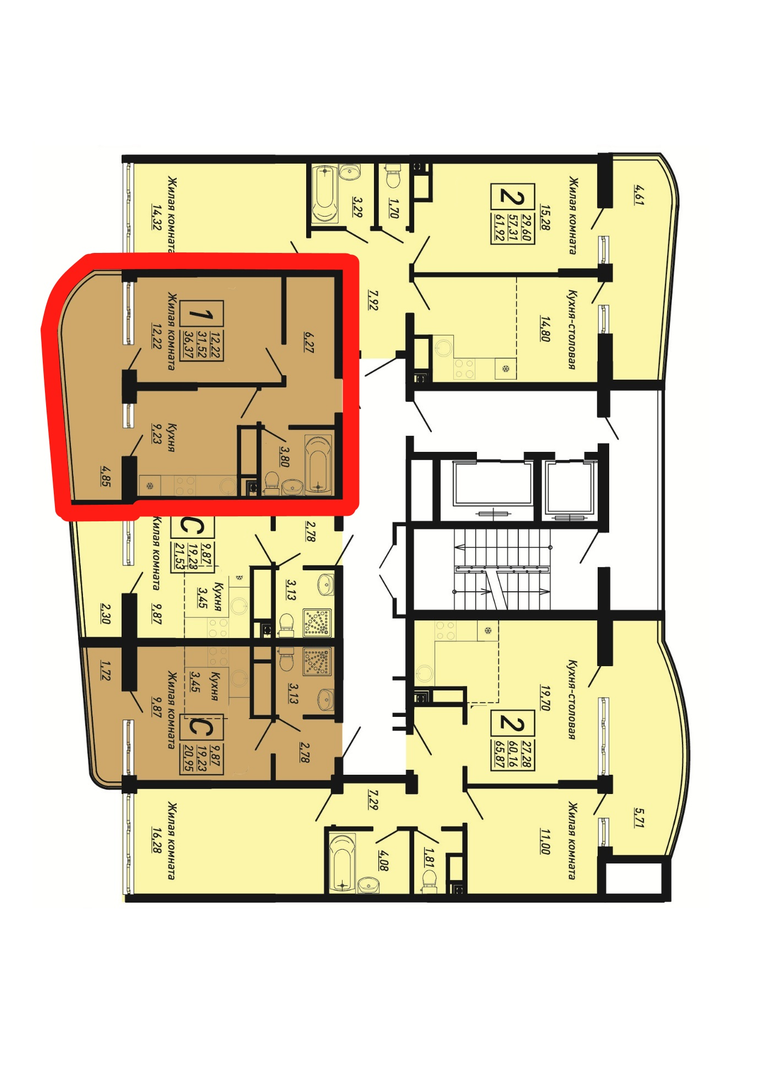 Квартира этаж 16, площадь 36.37 м2