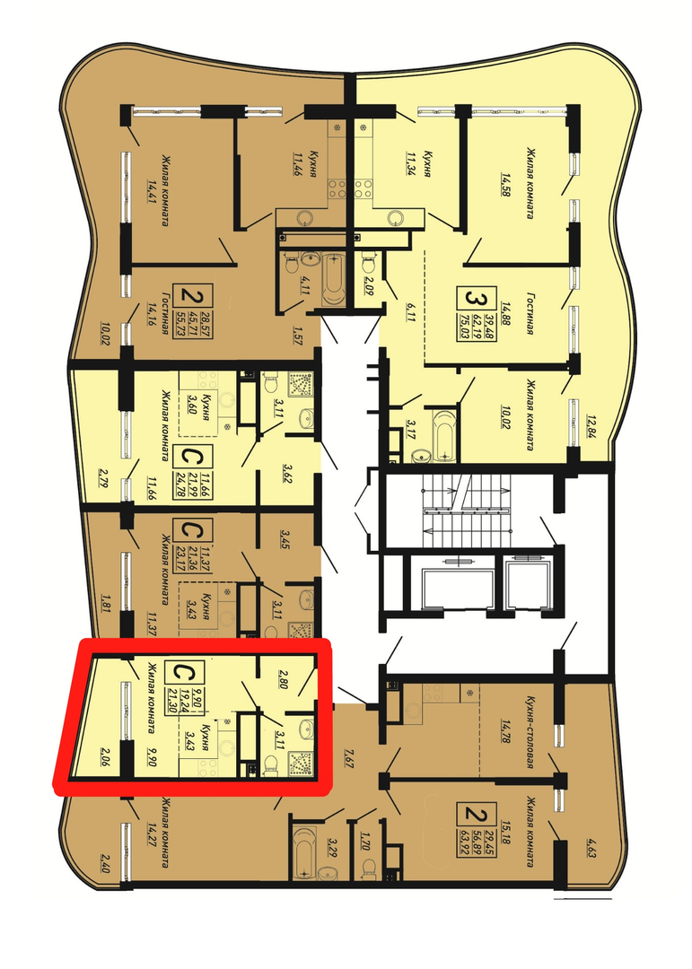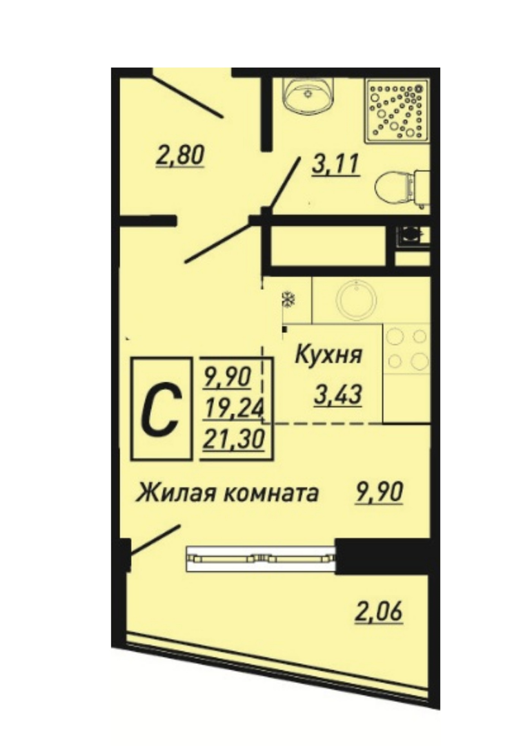 Квартира этаж 11, площадь 21.30 м2