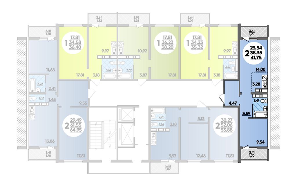 Квартира этаж 10, площадь 41.75 м2