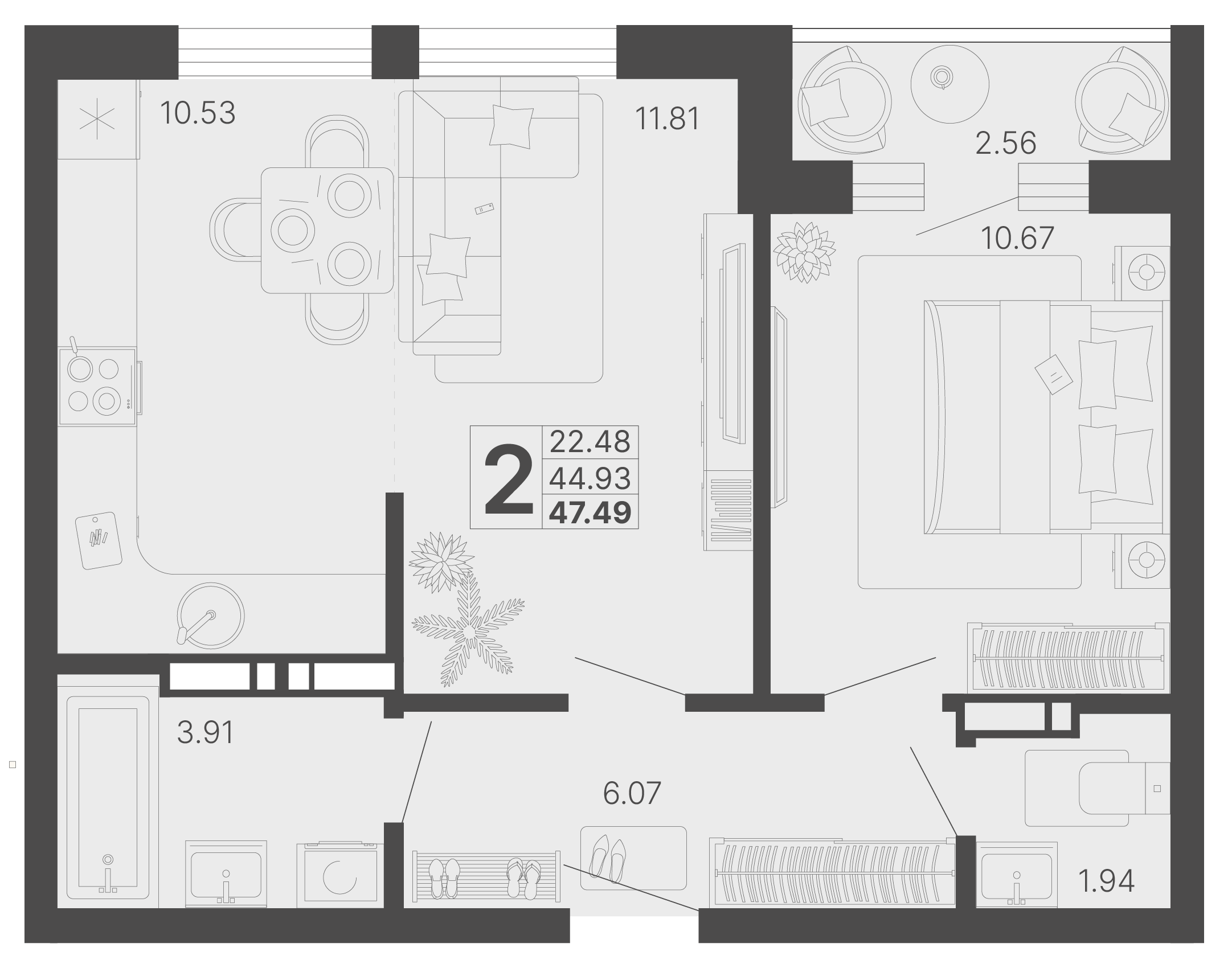 Общая площадь: 46.21м2