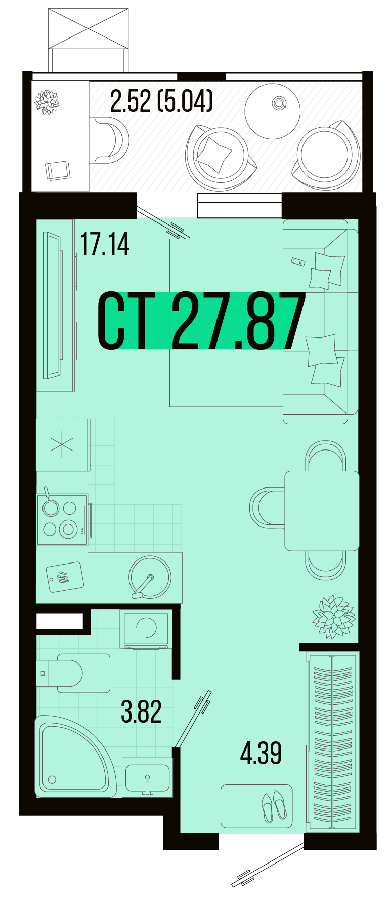 Квартира этаж 1, площадь 27.87 м2