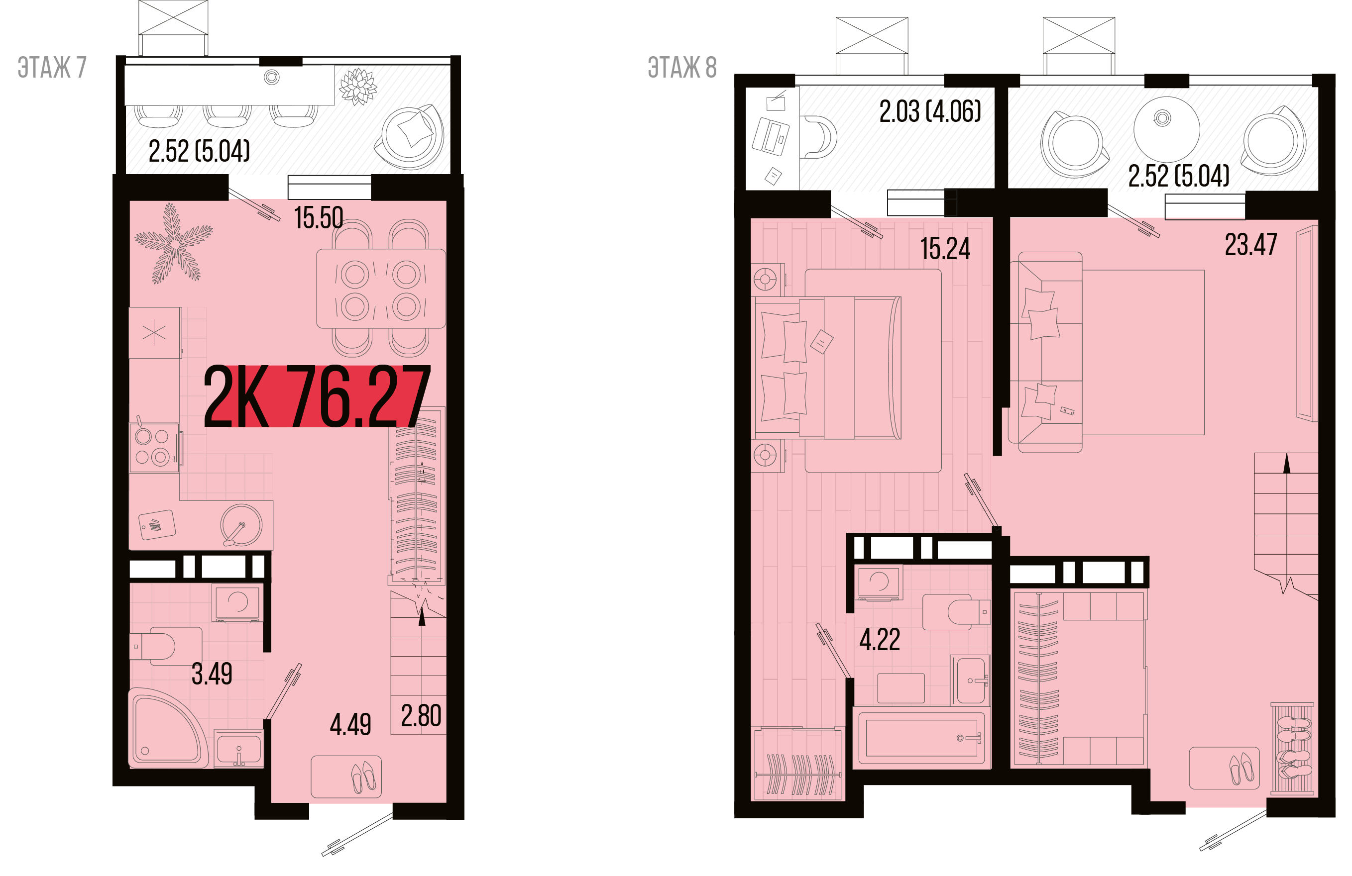 Общая площадь: 76.27м2