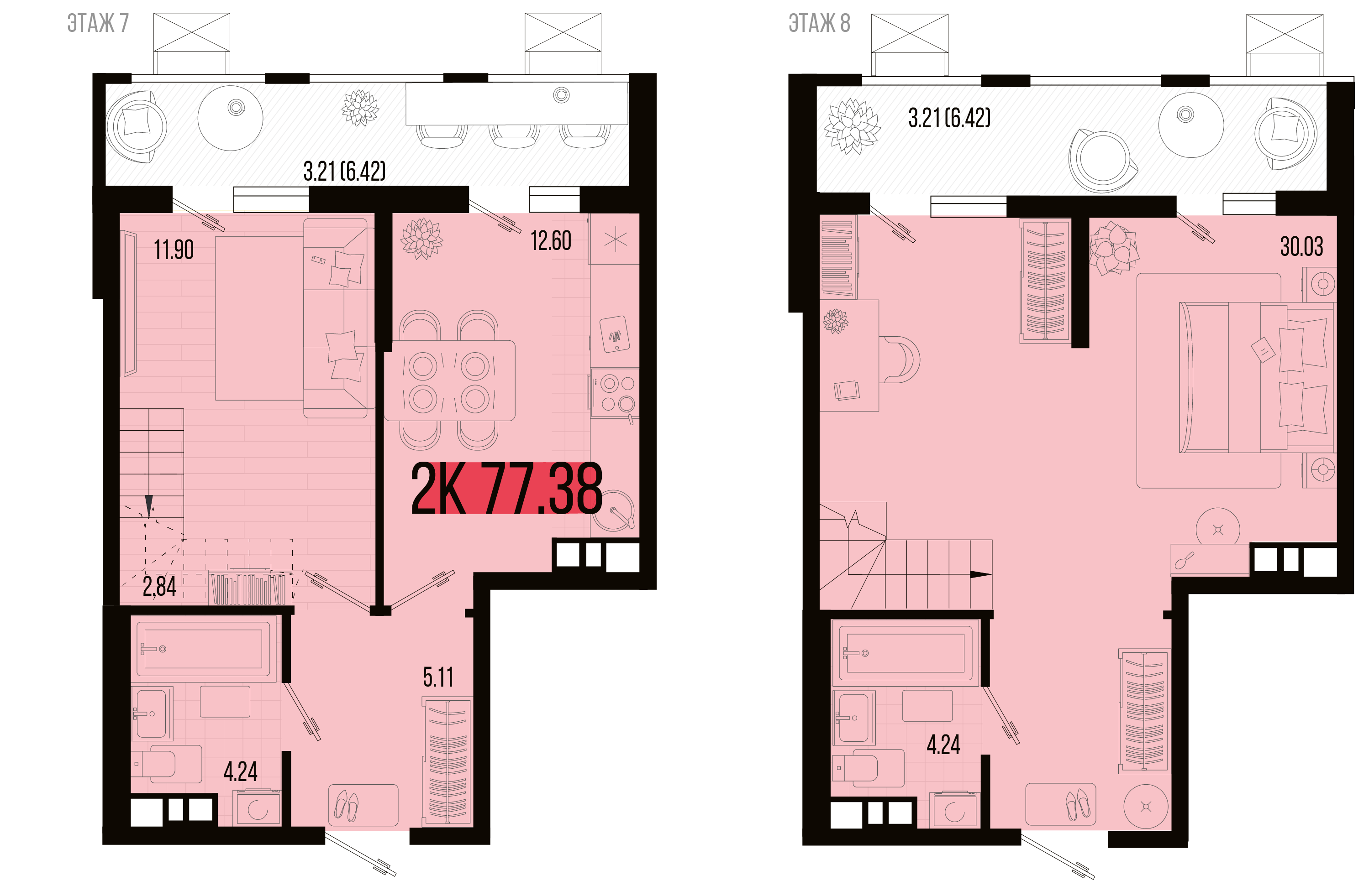 Квартира этаж 7, площадь 77.38 м2