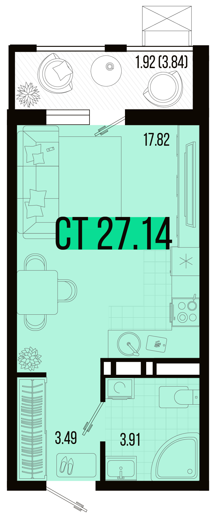 Общая площадь: 27.14м2