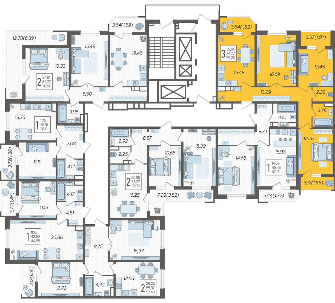 Квартира этаж 3, площадь 79.22 м2