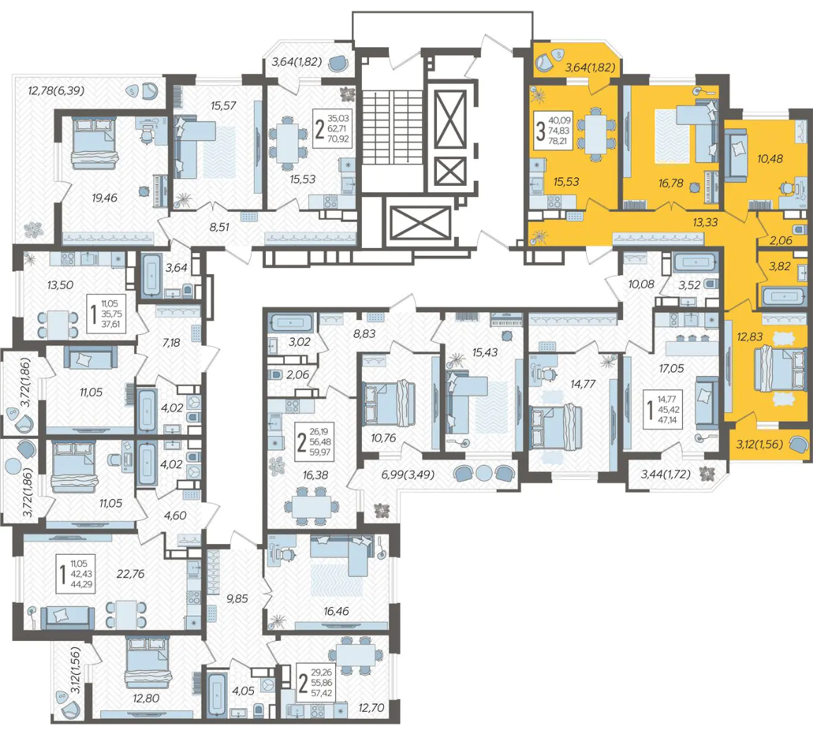 Квартира этаж 16, площадь 78.21 м2