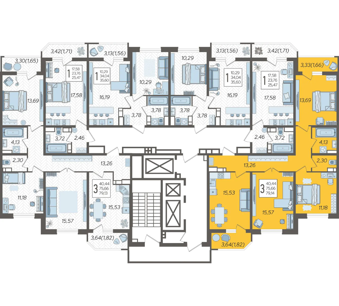 Квартира этаж 9, площадь 79.14 м2