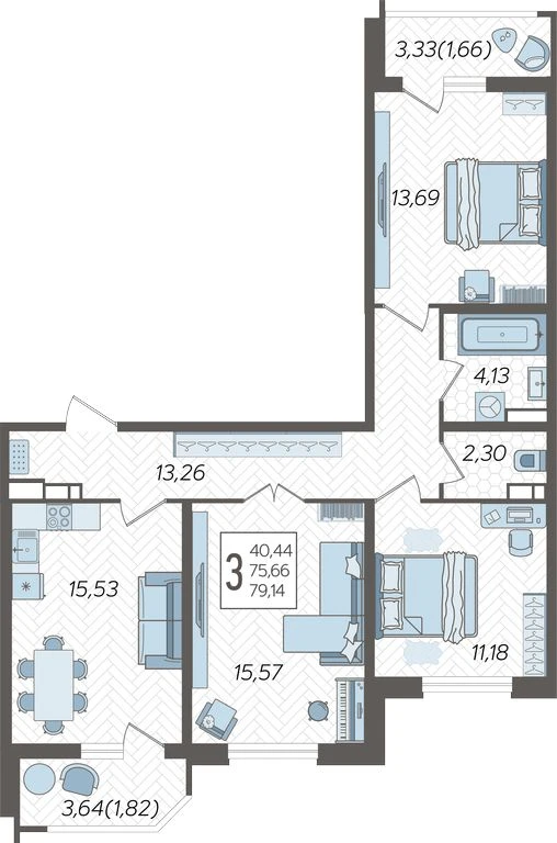 Общая площадь: 79.14м2