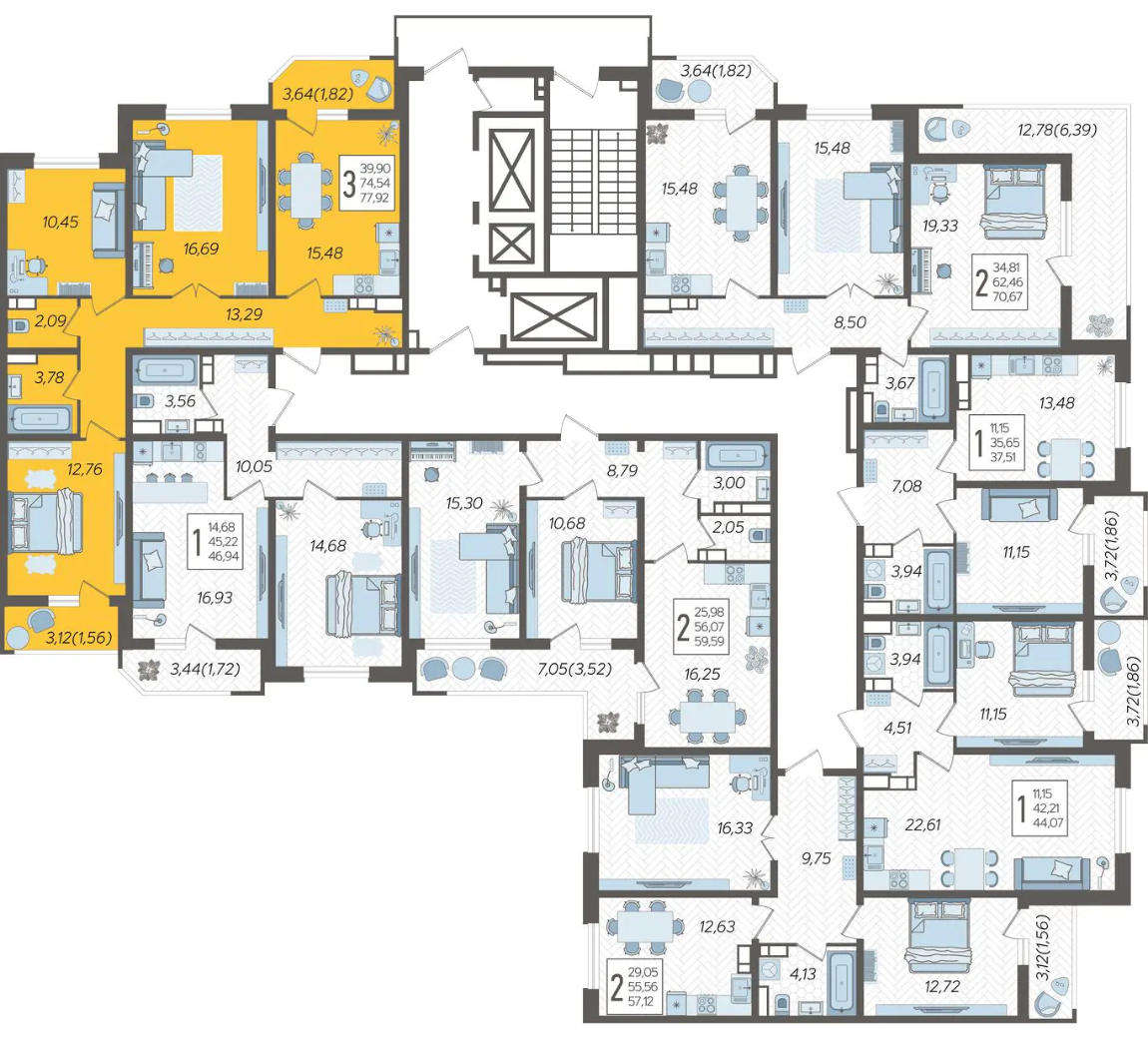 Квартира этаж 5, площадь 77.92 м2