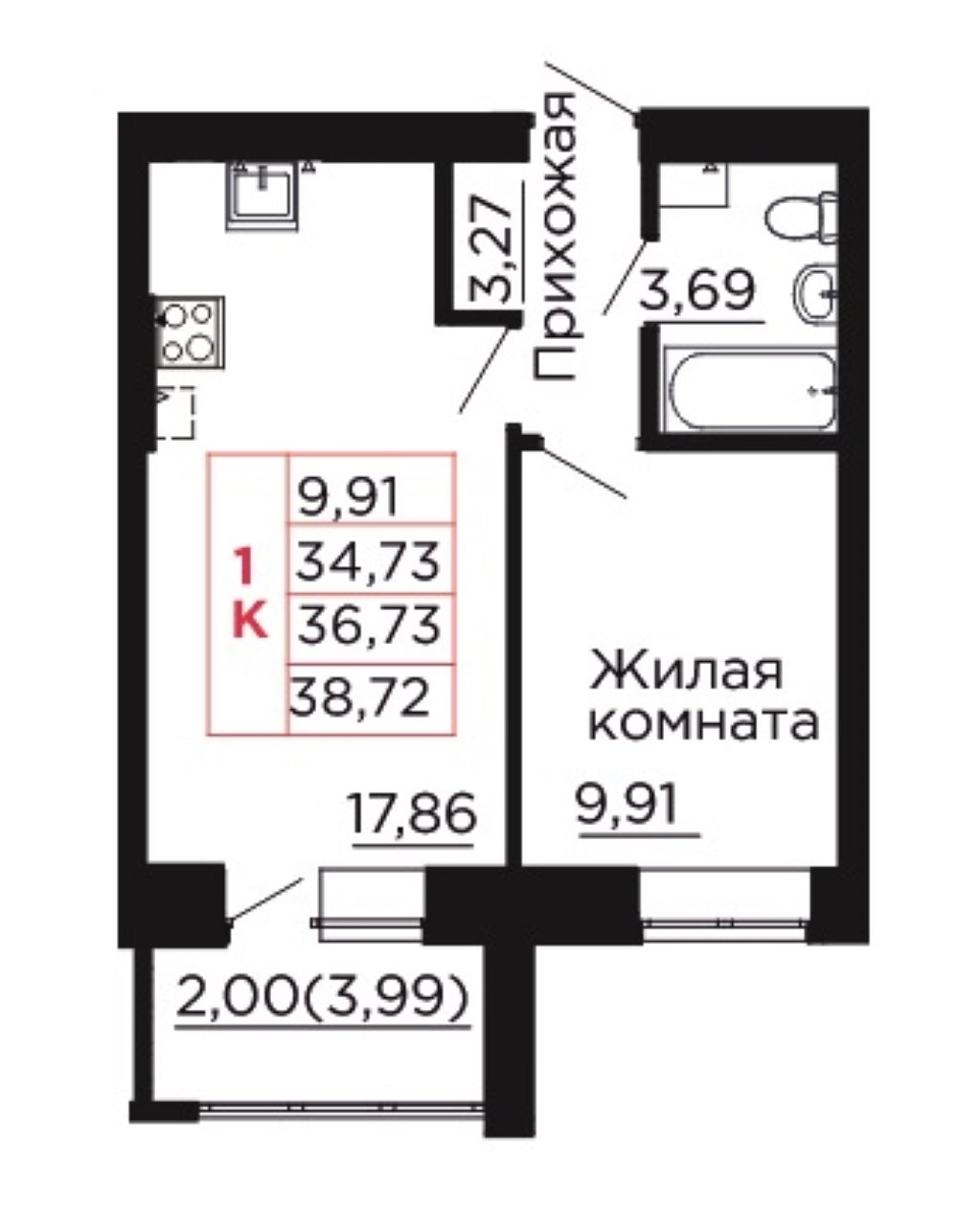 Общая площадь: 36.73м2