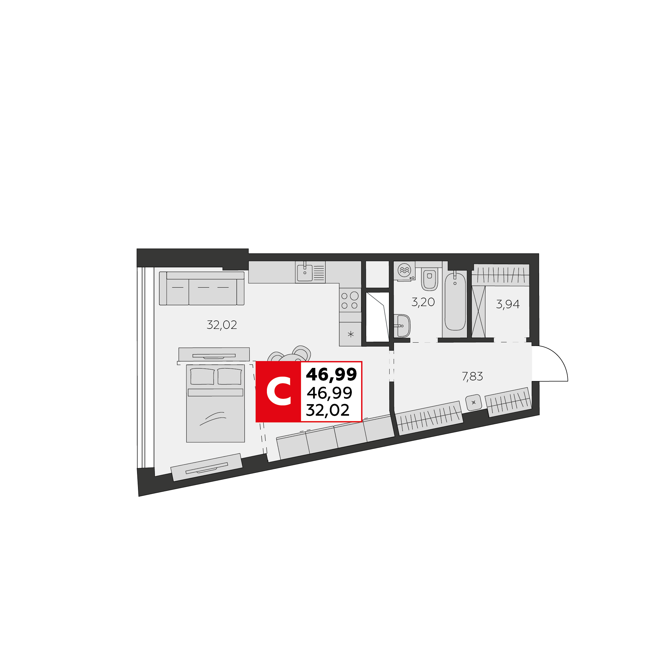 Общая площадь: 46.99м2