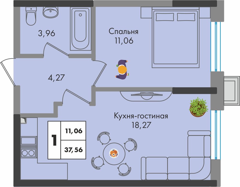 Общая площадь: 37.56м2