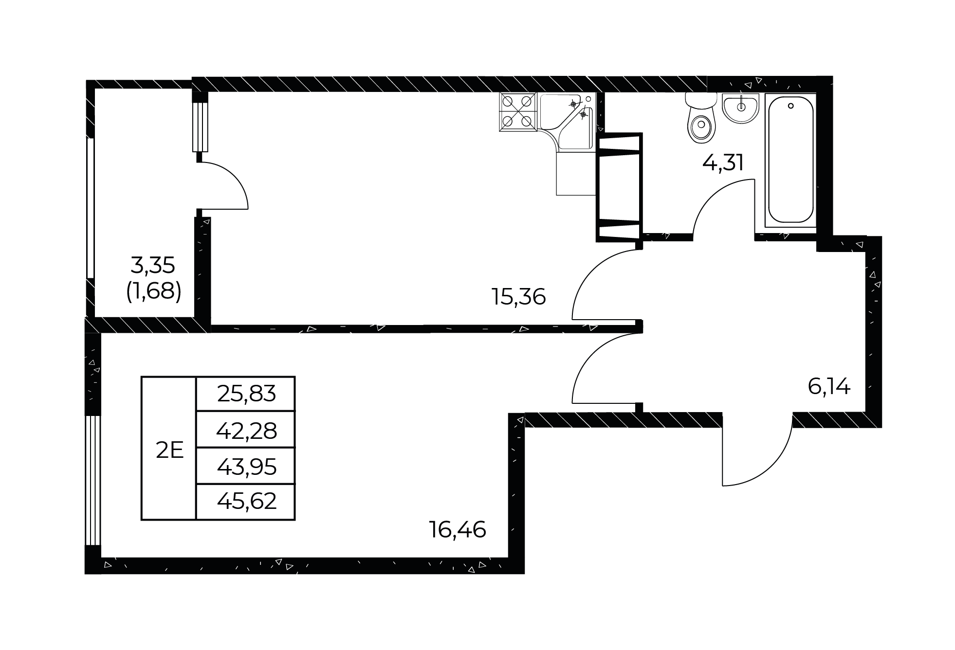 Общая площадь: 45.62м2